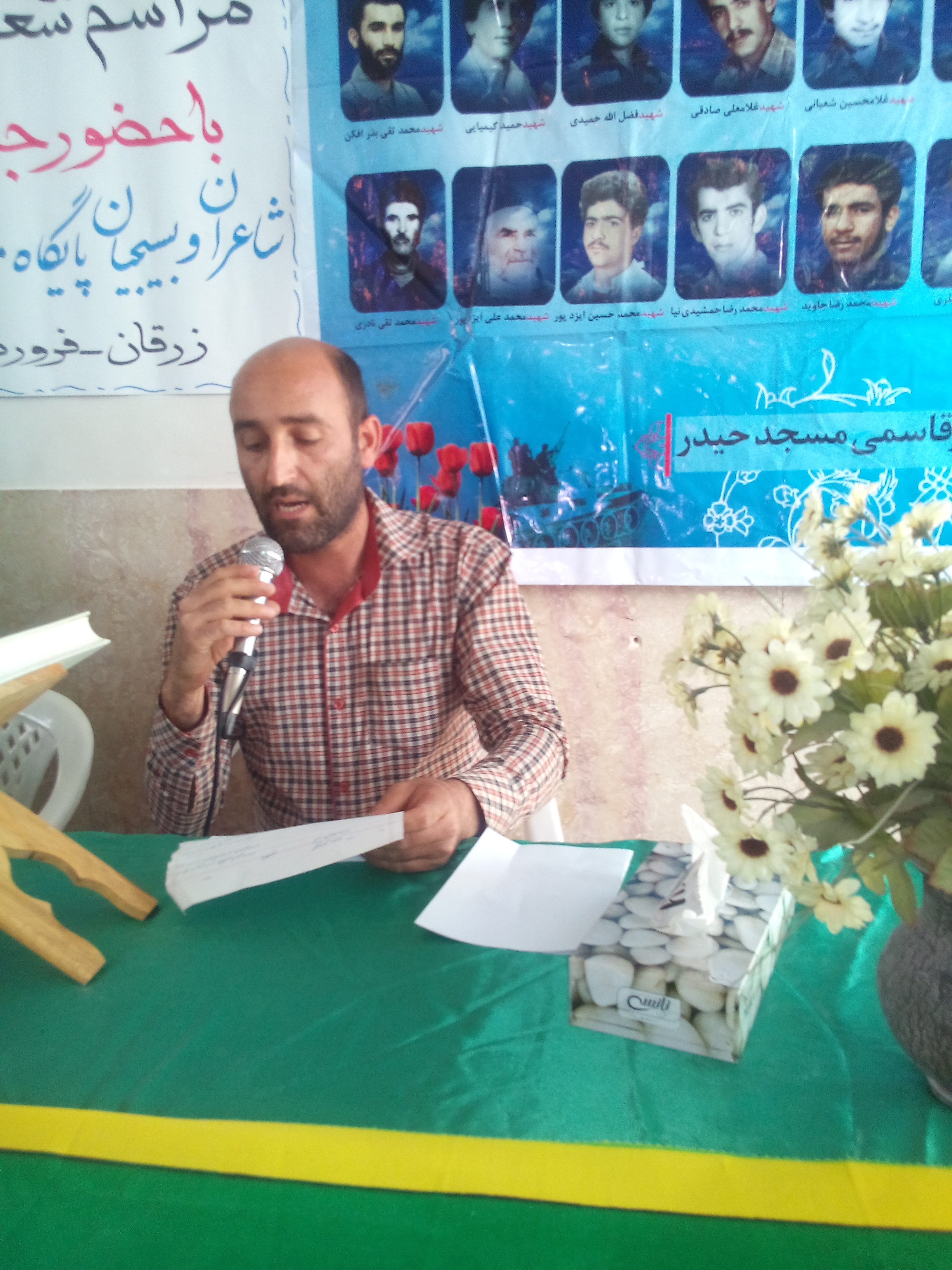 دراین مراسم که در سالروز میلاد با سعادت صدیقه کبری ، فاطمه زهرا (س)به همت پایگاه مقاومت حضرت خدیجه و انجمن ادبی مهرورزان در حسینیه حیدر زرقان بر گزار گردید شاعران زرقان ضمن گرامیداشت مقام حضرت فاطمه (س) و تجلیل روز زن و مقام مادر ، اشعار خود را به این مناسبت خواندند.