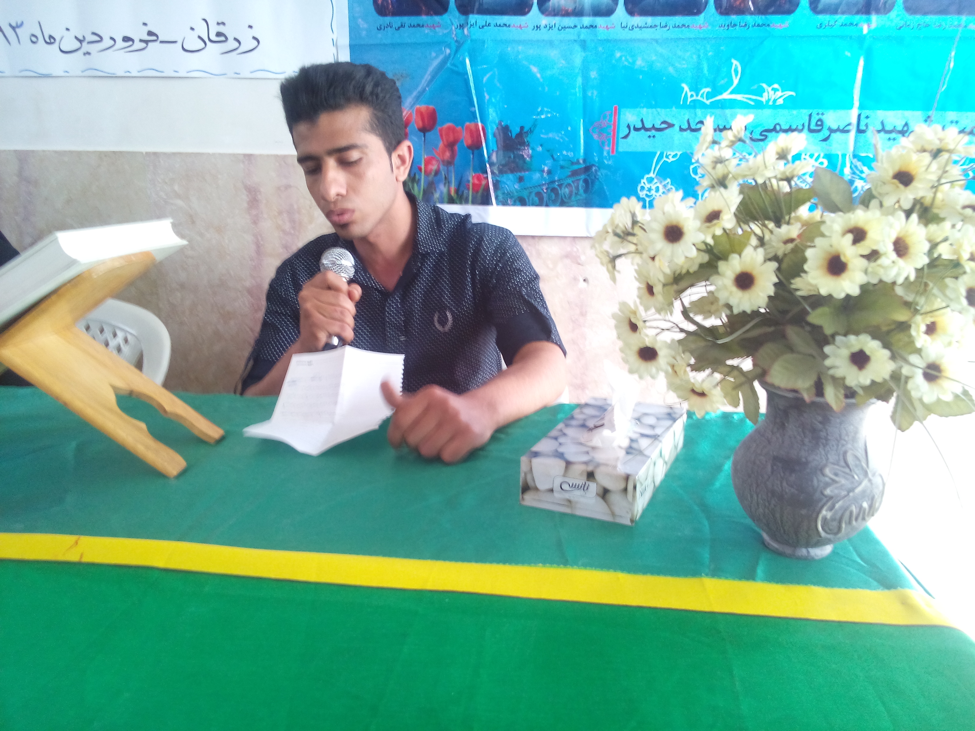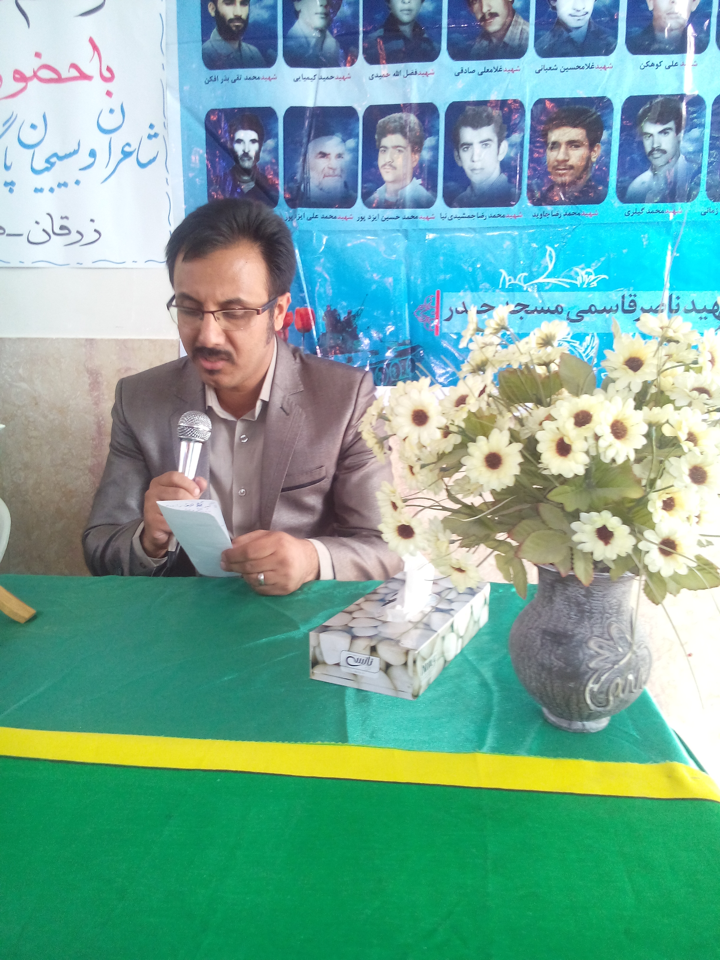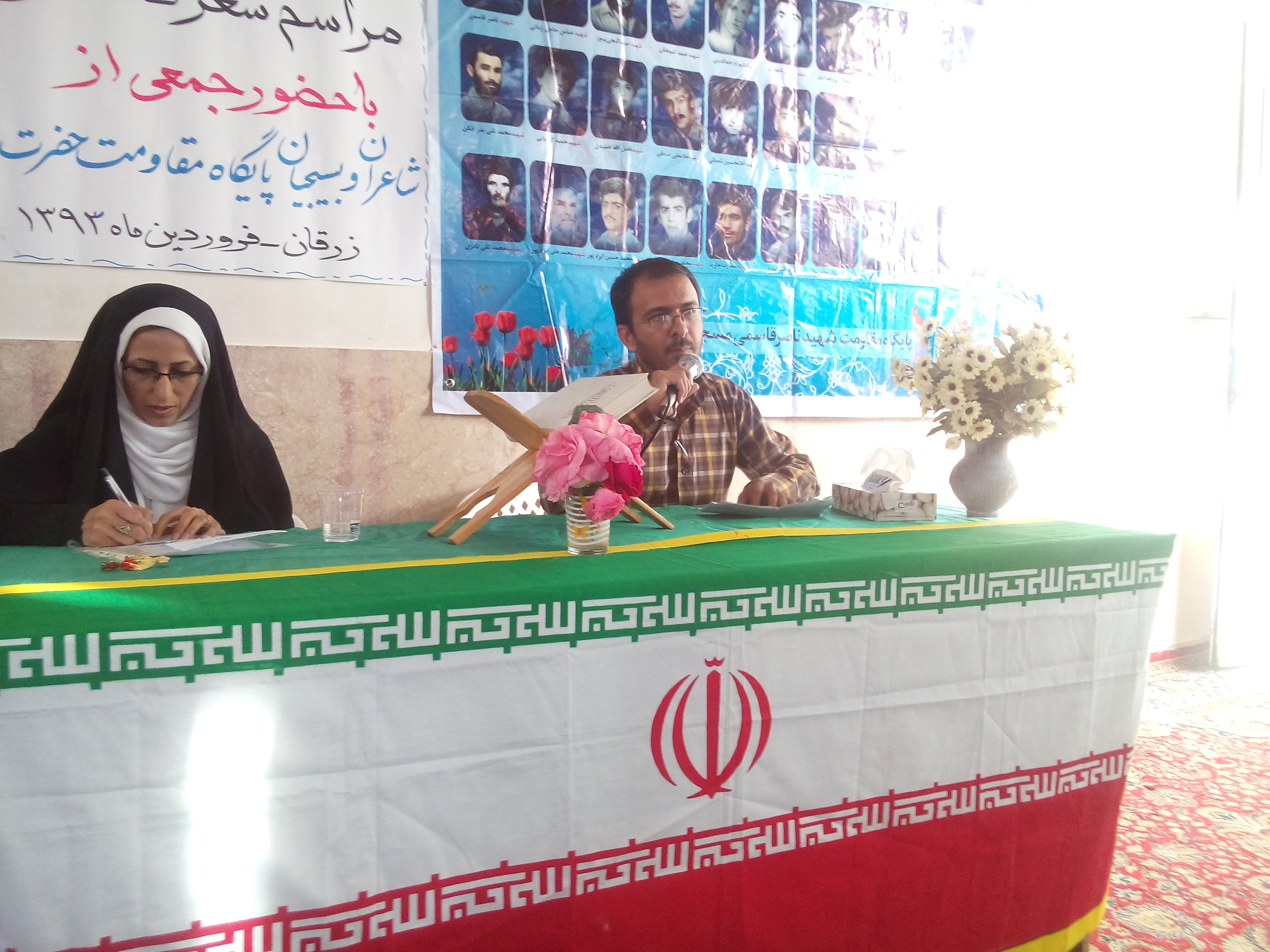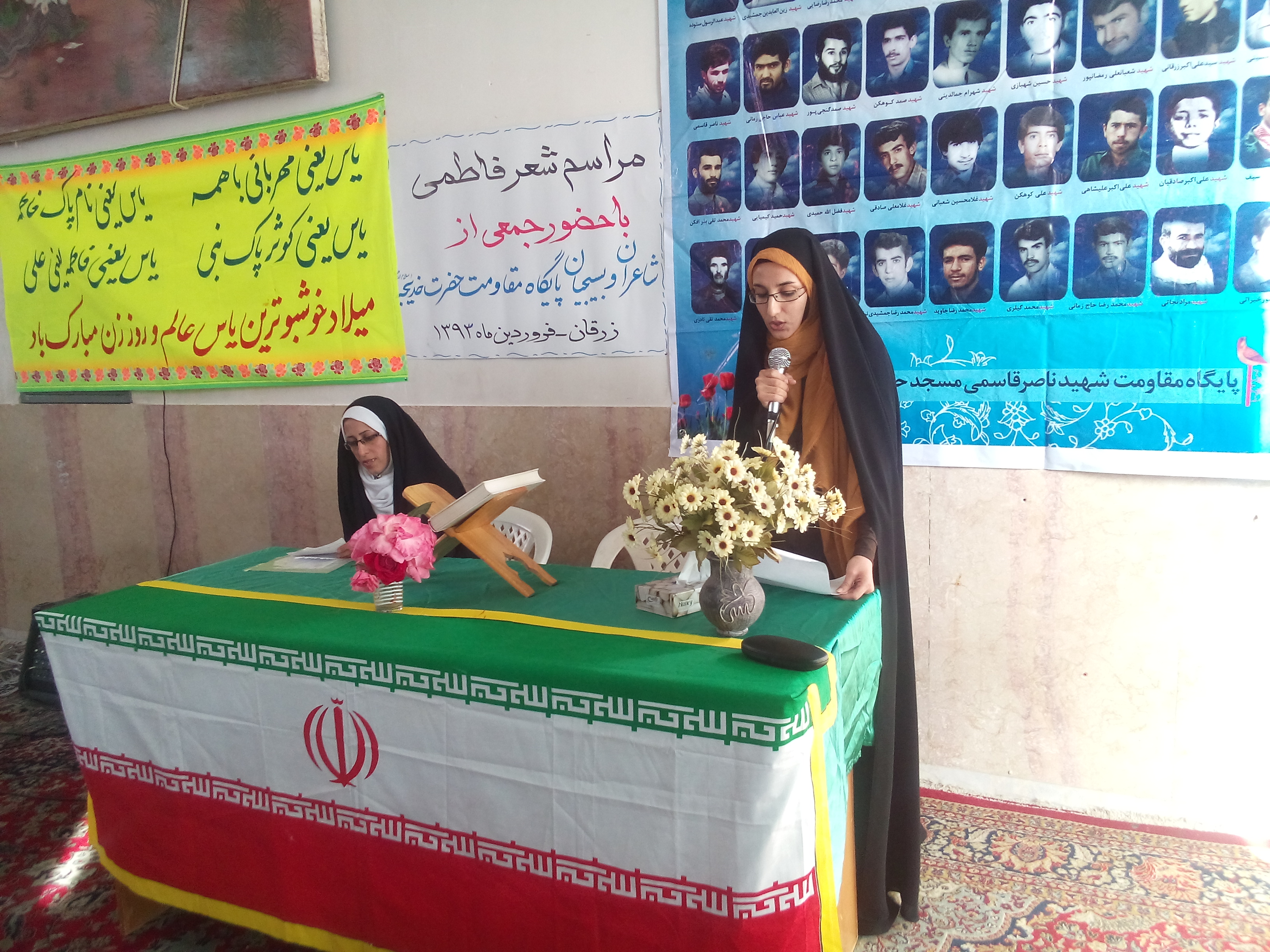 دراین مراسم که در سالروز میلاد با سعادت صدیقه کبری ، فاطمه زهرا (س)به همت پایگاه مقاومت حضرت خدیجه و انجمن ادبی مهرورزان در حسینیه حیدر زرقان بر گزار گردید شاعران زرقان ضمن گرامیداشت مقام حضرت فاطمه (س) و تجلیل روز زن و مقام مادر ، اشعار خود را به این مناسبت خواندند.